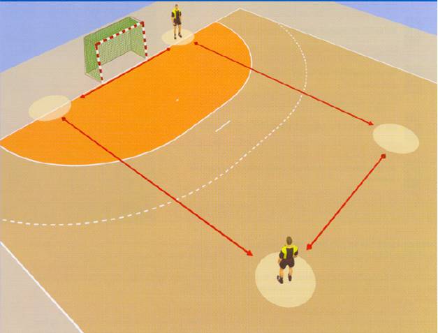 doelscheidsrechter moet 1 of 2 meter van het goal af gaan staan. Zie onderstaande